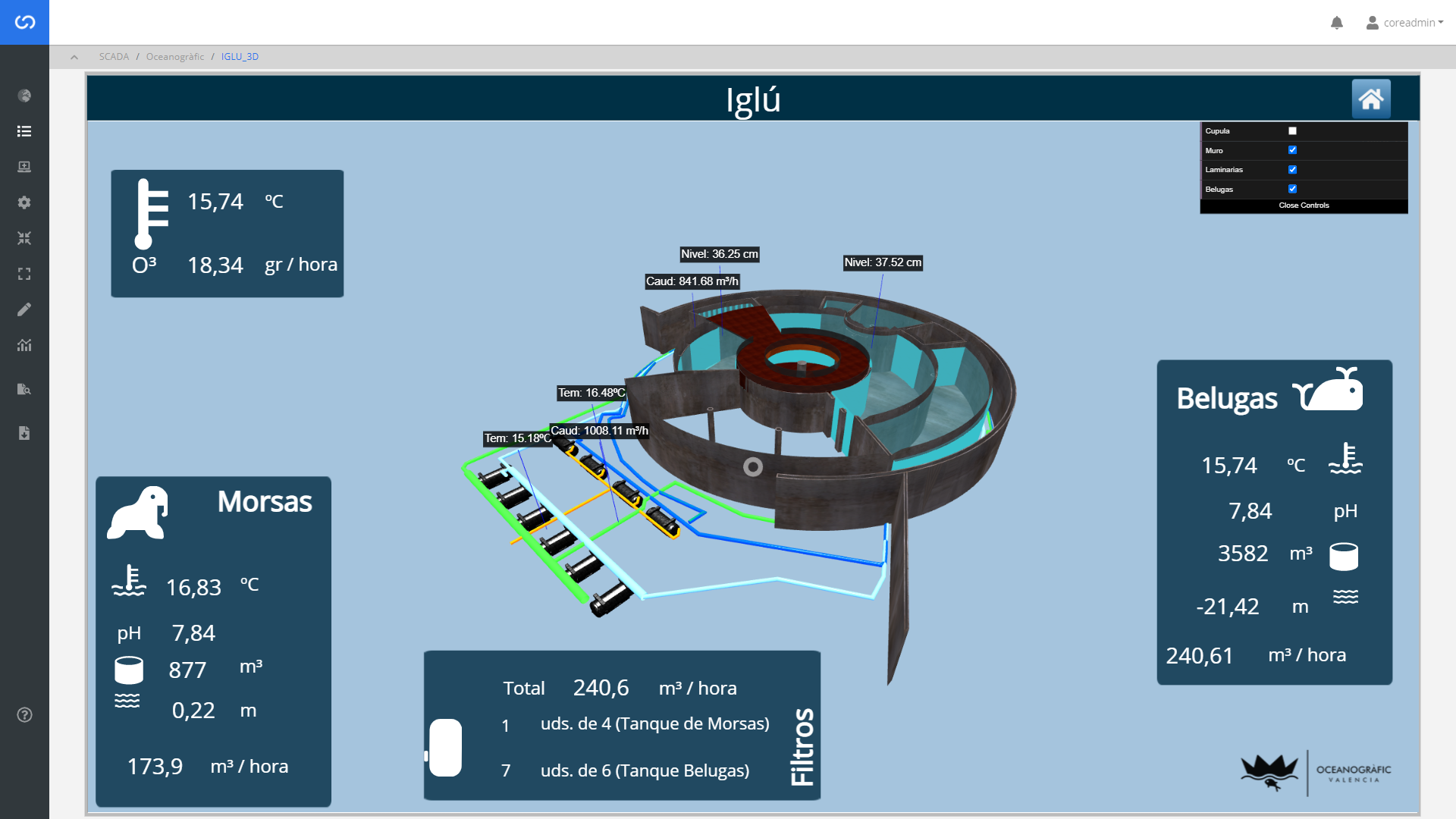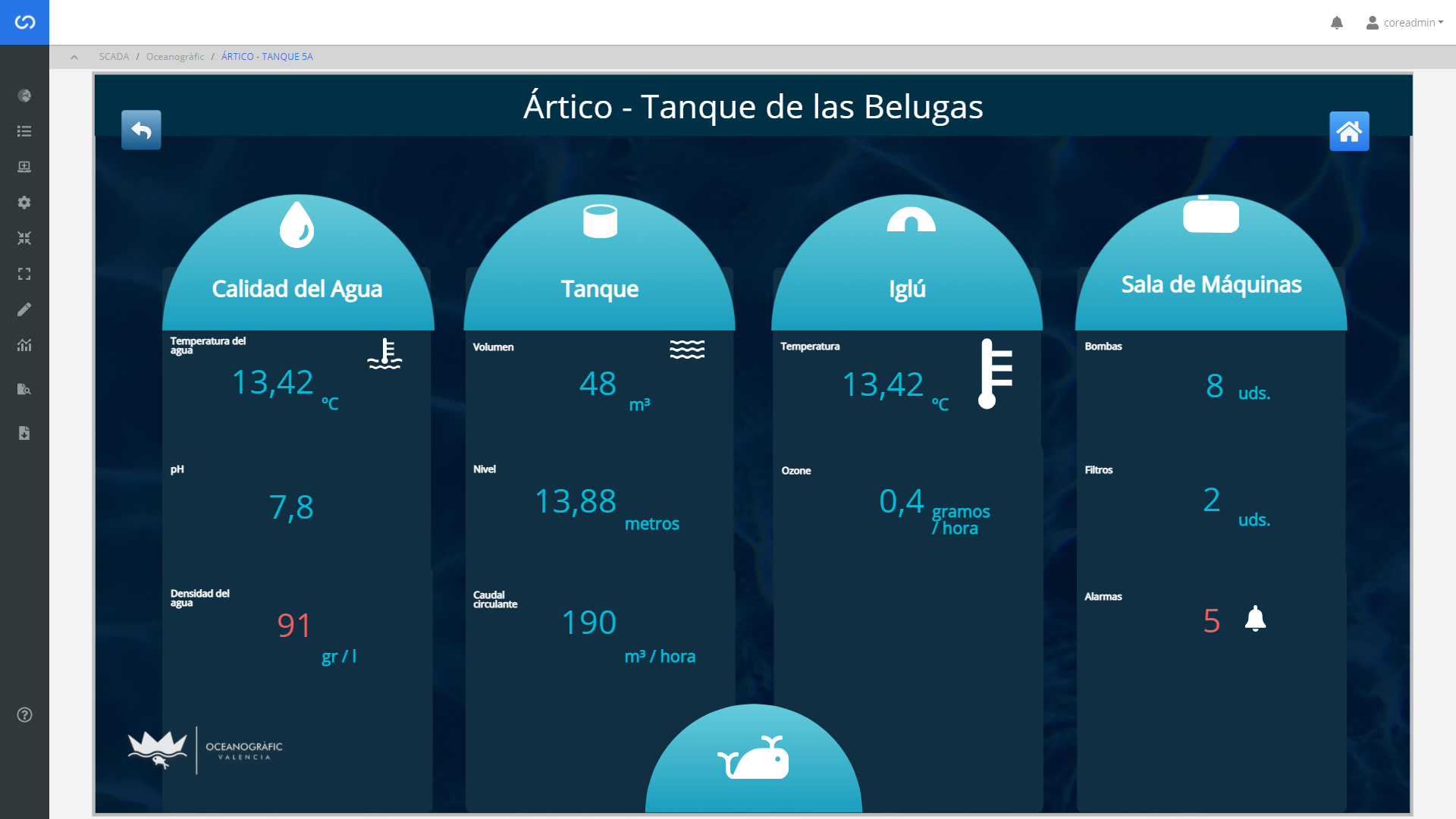 El usuario puede controlar, monitorizar y navegar por sus instalaciones a través de un mapa. Dentro de cada una de estas instalaciones puede haber uno o más SCADAs.
